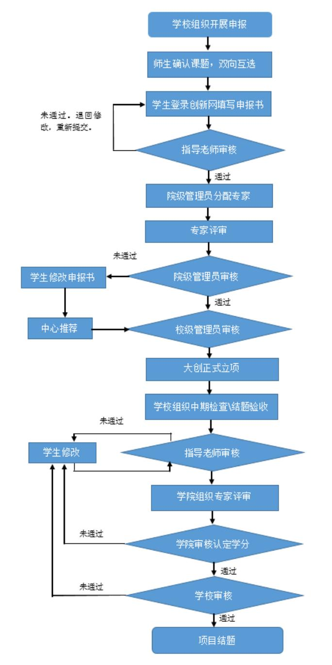 根据教育部关于印发《国家级大学生创新创业训练计划管理办法》的通知(教高函[2019]13号)和有关文件精神要求,为进一步深化创新创业教育改革,增强学生创新精神、创业意识和创新创业能力,2021年,我校大学生创新创业训练计划项目开始实行学院主体管理、学校过程管理模式。中心协助教务处规范学校大创项目管理,每年组织开展两批大创项目建设。申报时间,由项目负责人登陆厦门大学本科生创新网(http://cxw.xmu.edu.cn/)进行网上填报,系统使用说明、申报进程和结果等可在创新网查询。