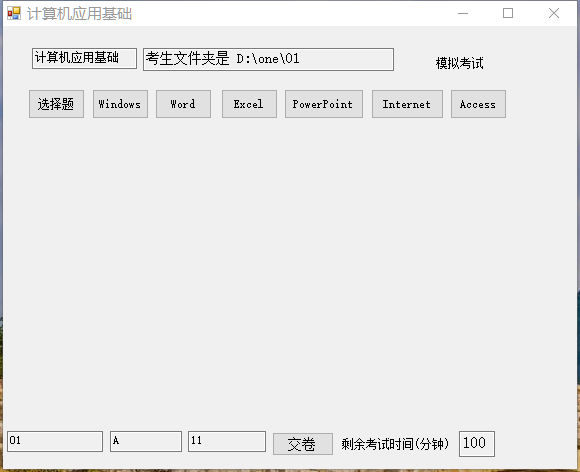 电脑开机后选择“win10 5”操作系统,进入系统桌面后打开 “计算机应用基础考试”进行自动安装考试软件,待软件安装完成后再打开“启动Exam”进入考试系统。