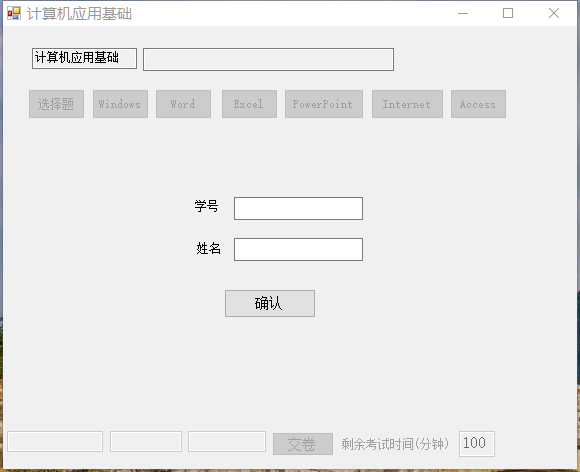 2. 根据要求输入学号和姓名,点击确认开始考试