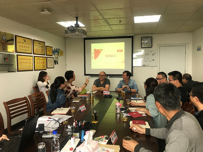 “四个字!看我的动作……”台上,蔡国荣同志刚刚双手比出一颗心形,党员们就纷纷抢答:“知道了,不忘初心!”,各位党员选手踊跃参与,现场气氛十分活跃。“南昌起义”、“撸起袖子加油干”等词语在党员同志们睿智、默契又不乏幽默的表现中完成,把学习活动推向高潮。