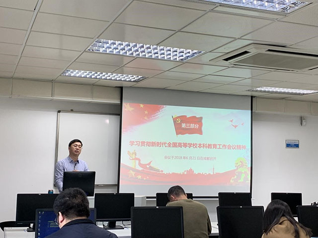 1月15日,现代教育技术与实践训练中心党支部召开了2019年的第一次政治理论学习活动,中心支部书记谢火木做题为《聚焦党的十九大——深入学习贯彻落实全国教育大会精神、新时代全国高等学校本科教育工作会议精神》的主题报告。