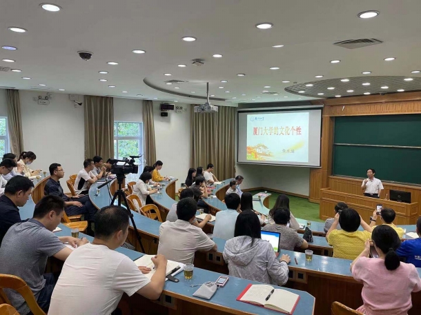 最近全国、全校上下都在如火如荼地开展党史学习教育,为了更深刻学习领悟校主陈嘉庚先生的爱国主义精神内涵,5月8日,教务处现代教育技术与实践训练中心联合党支部、教师发展中心党支部,与共建支部实验处党支部、化学化工学院办公室党支部,在集美二201召开“弘扬嘉庚精神 奋进一流征程”主题固定党日+活动,邀请朱水涌教授做主题为《叩问伟大生命,汲取一流力量》的党课。讲座由教务处处长、现代教育技术与实践训练中心主任计国君教授主持。